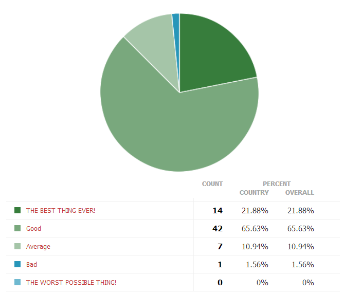 Over a 2/3 majority says it is a good episode overall. Then there is the one percent who thought it was a bad episode,