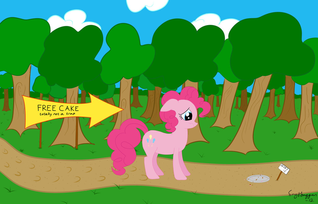 There I was, at the Salty Spitoo-... er I mean Sugarcube Corner! I woke up from a deeeep slumber because I was thirsty. I stumbled (fell) down the stairs and into the kitchen, and there she was! She was pink and doing something I couldn't see yet. But something was wrong... VERY wrong. I went to see just what was wrong and then it hit me, she wasn't a pony... I was a human! I gasped at my sudden realization as I noticed that she wasn't making a cake but rather a sandwich! With mayonnaise! "AAAAAAAAHHHH!" I screamed as I saw her put some salami on it. It was the worst day of my life, mustard should be put on a sandwich BEFORE mayonnaise. But anyway, the point is: the pony was Pinkie and I still didn't get any water...