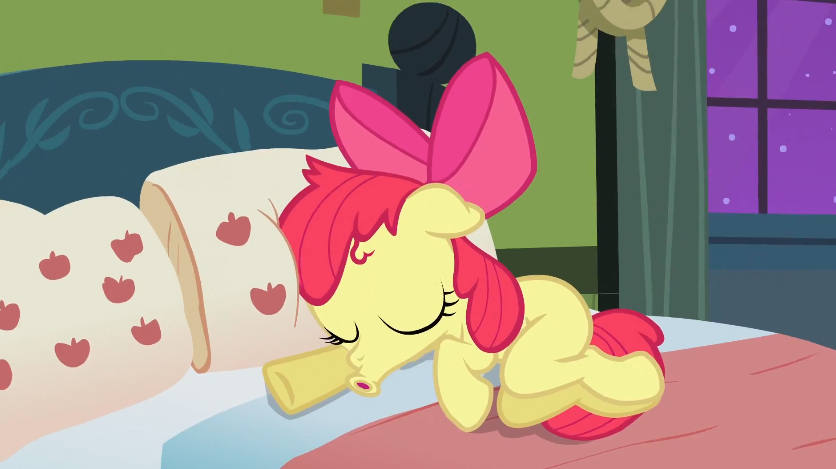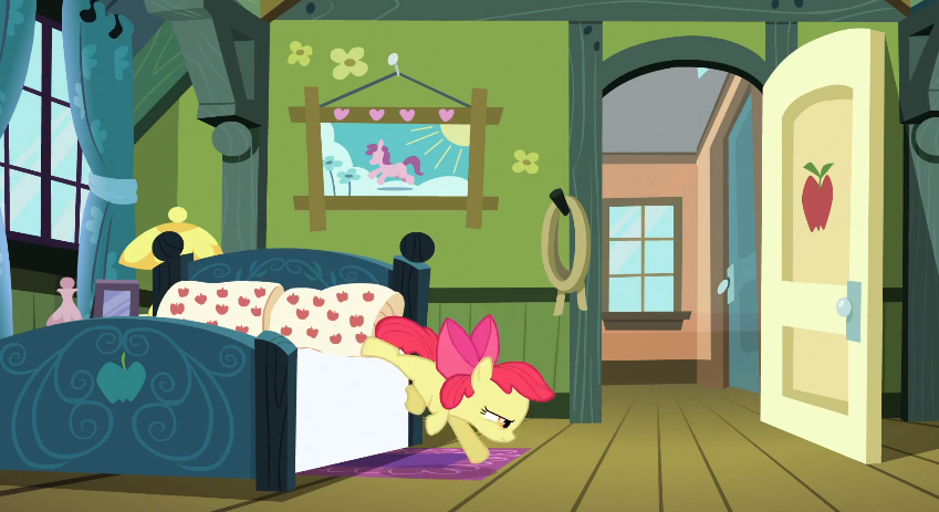 Alright Applebloom, you can do this! It's only a simple jump from the bed.
