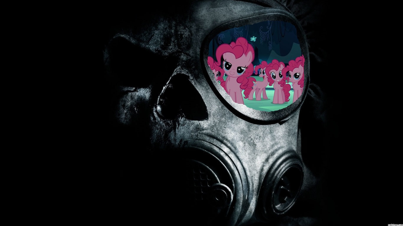 Actually that doesn't sound too bad, let's look for something else... uh hundreds of Pinkie's looking into my gas mask! Hmm that boils down to me still wearing it... still sounds good though...