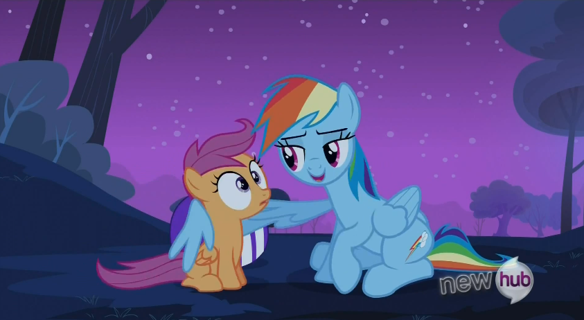 RD is having WAY too much fun with those clouds, and Scootaloo approves.