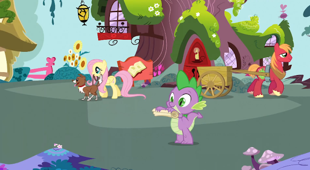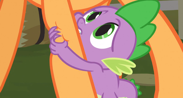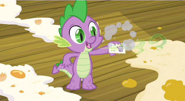 Nothing really to note in this episode, except for a bunch of animation errors. Looking at Spike's performance, I say he is the new Derpy. Given Spike's awesome parkour and aim with throwing rocks, I would have named this episode "Dragons Creed". The plot also seemed to be the I owe you my life plot exactly.
